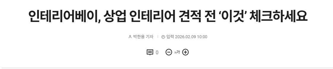 인테리어베이 관계자는 “상업 인테리어는 겉으로 보이는 디자인보다 보이지 않는 구조와 조건을 얼마나 꼼꼼하게 준비했는지가 완성도를 좌우한다”며 “견적 전 충분한 사전 점검과 전문가 상담을 통해 후회 없는 선택을 하는 것이 중요하다”고 말했다.